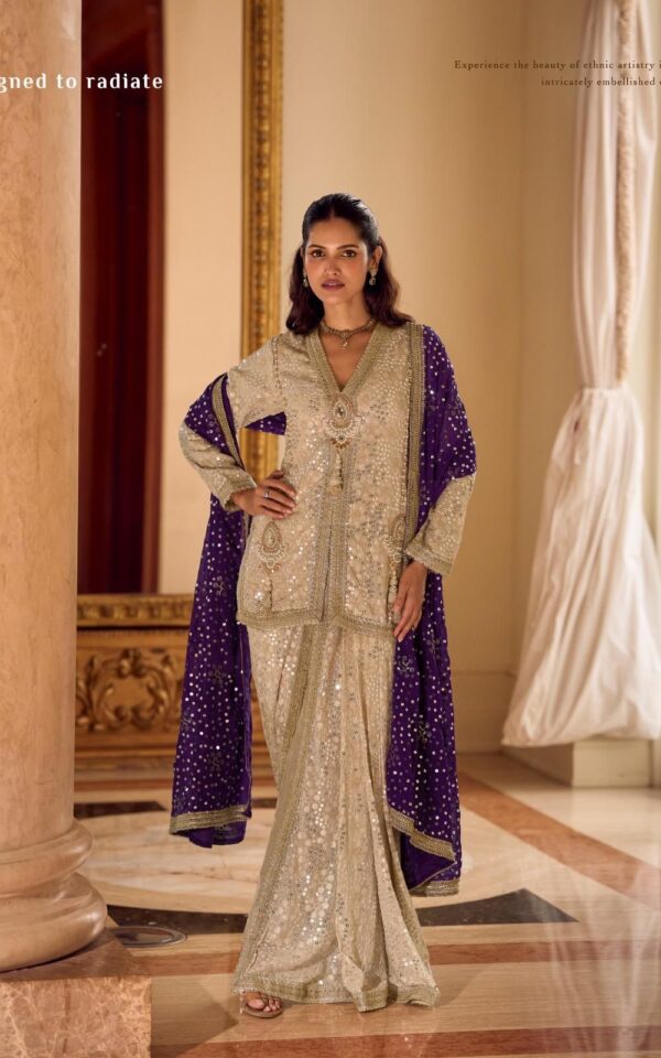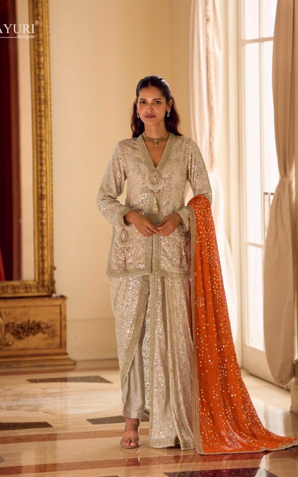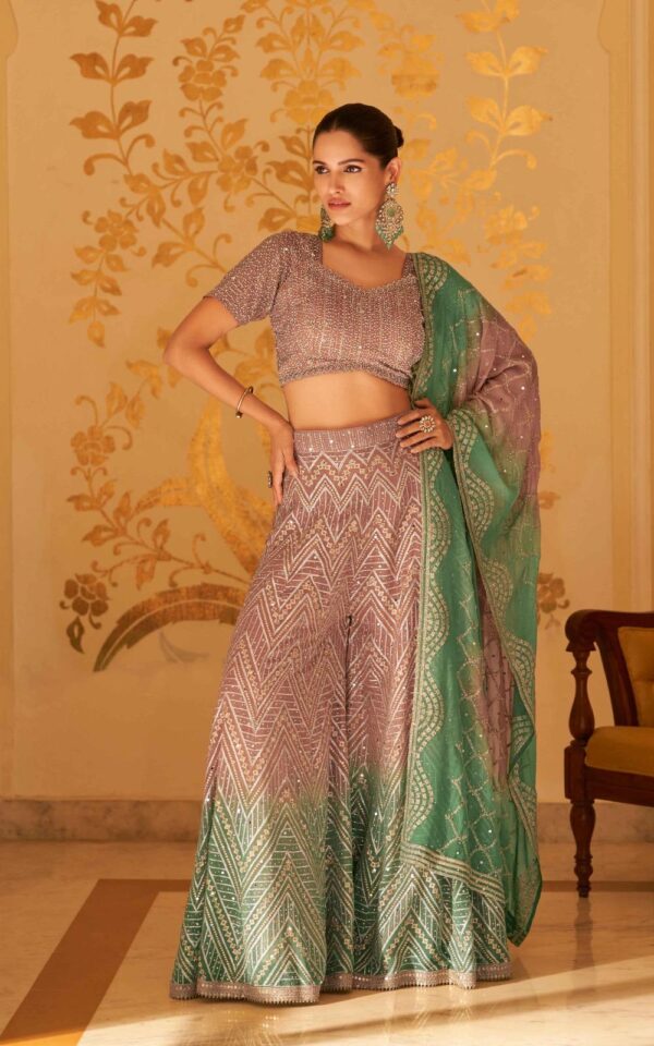 Sayuri Designer Laskara Seroski Zarkan Plazzo With Blouse And Dupatta