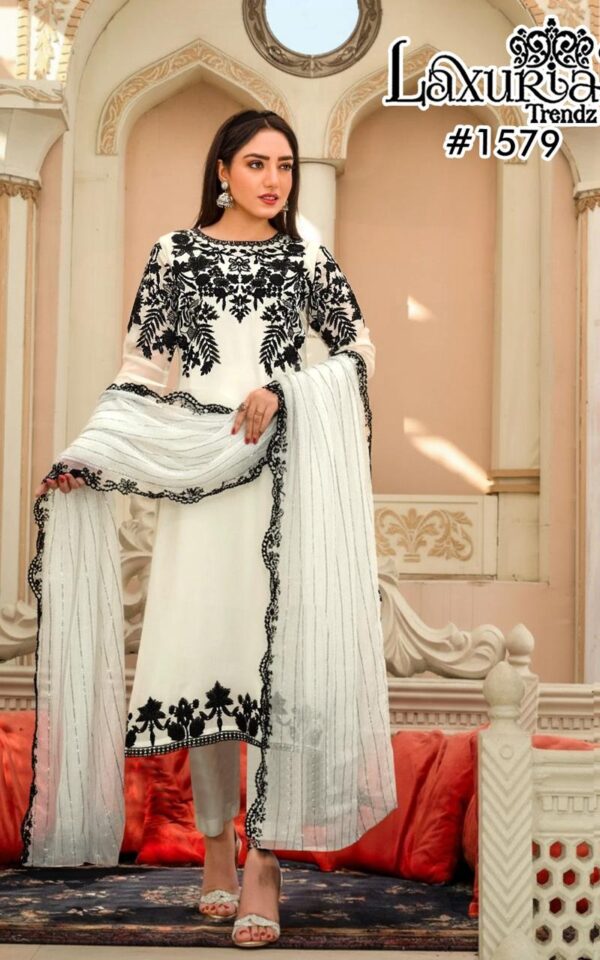 Laxuria Trendz Georgette Fox Tunic Stylish White Kurti Pant & Duppata