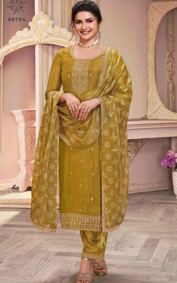 Aashirwad Creation Present Aavya Yellow Salwar Suit (3pcs) Dress