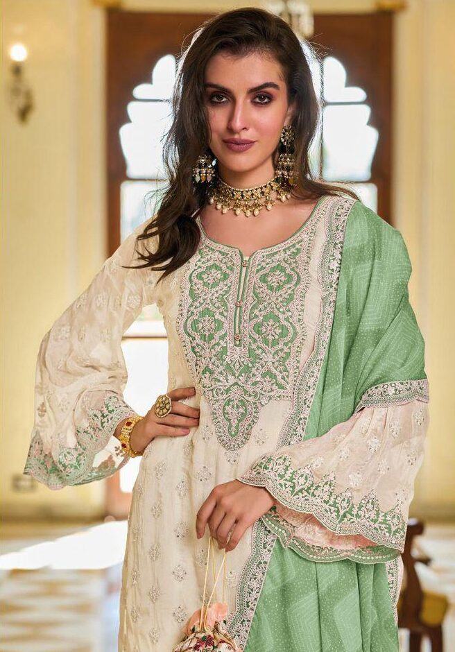 Eba Life Style Zarkash Green & White Color Readymade Salwar Suit