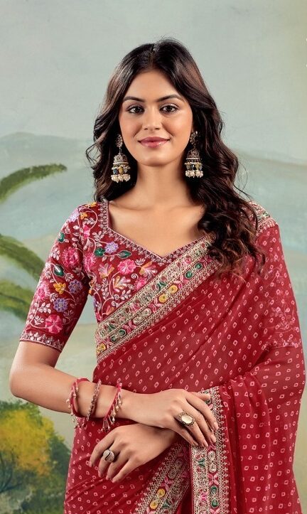 ➡️Fabric – *Heavy Georgette with Fancy Lace & Heavy Embroidery Blouse*