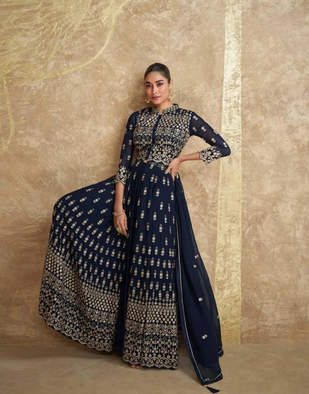Details | Premium Real Georgette (Heavy Embroidered Dress with Palazzo and Dupatta) |