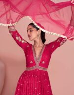 FABRIC – PREMIUM REAL GEROGETTE ( TREDY FESTIVE LOOK FRONT AND BACK EMBROIDERED GEROGETTE GOWN WITH DUPATTA )