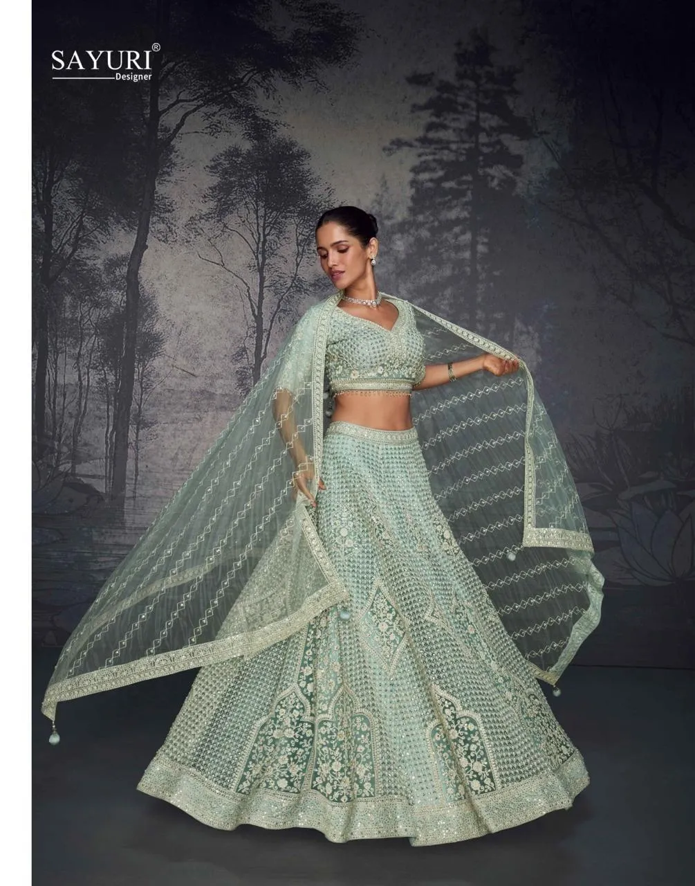 Details | Pure Net Fully Embroidered with Hand Moti and Seroski Hand Diamond (Front and Back Full Handwork Embroidered with Cancan) |