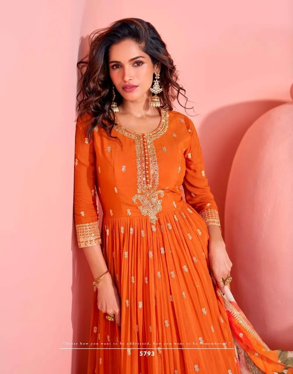 Details | Premium Real Chinnon Silk (Premium Chinnon Silk Embroidered Front and Back Gown with Embroidered Digital Chinnon Silk Dupatta) |