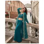 | Details | Premium Real Chinon Silk / Viscos Jacquard Silk (Tredy Festive Look Front And Back Embroidered Shrug With Embroidered Blouse On Hand Embellished Mirror Work With Stylist Plazzo) |