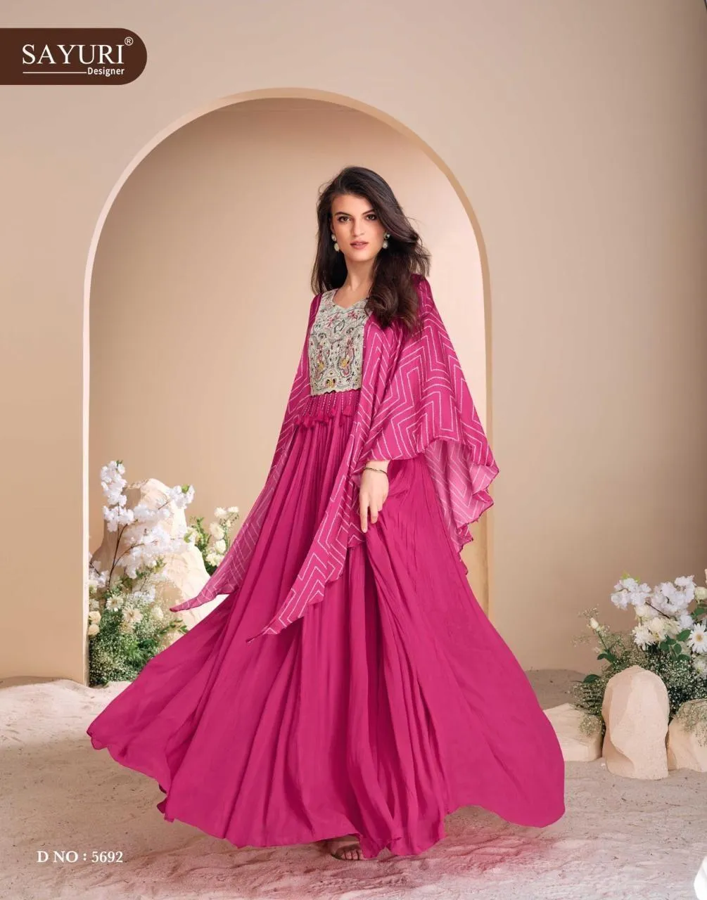 Details | Premium Real Chinnon Silk (Full Heavy Look Hand Moti Embroidered Chinnon Silk Gown with Digital Sleeves) |