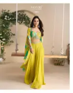 Details Premium Real Chinon Silk (Heavy Embroidered Shrug with Hand Embellished Work Blouse and Plazzo)