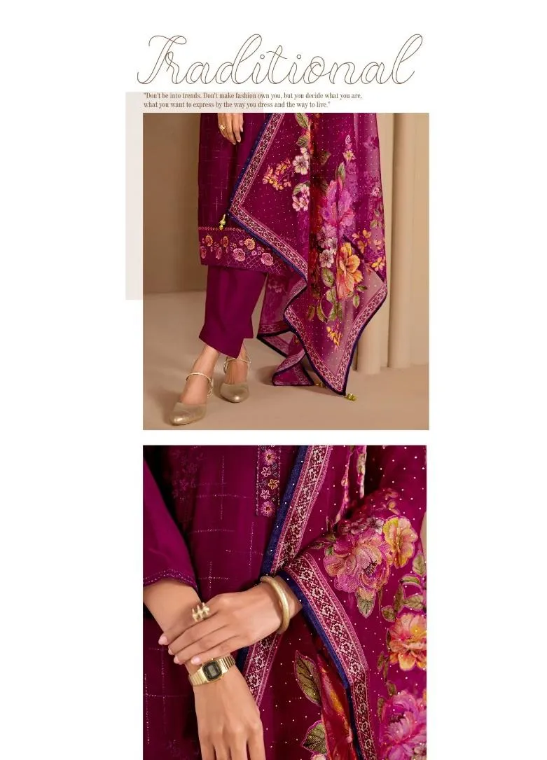 Details | Chinnon Chiffon Top with Embroidery Work, Soft Santoon Bottom & Inner, Organza Brasso Print Dupatta with All Over Swarovski Work ( Semi Stitch Product ) |