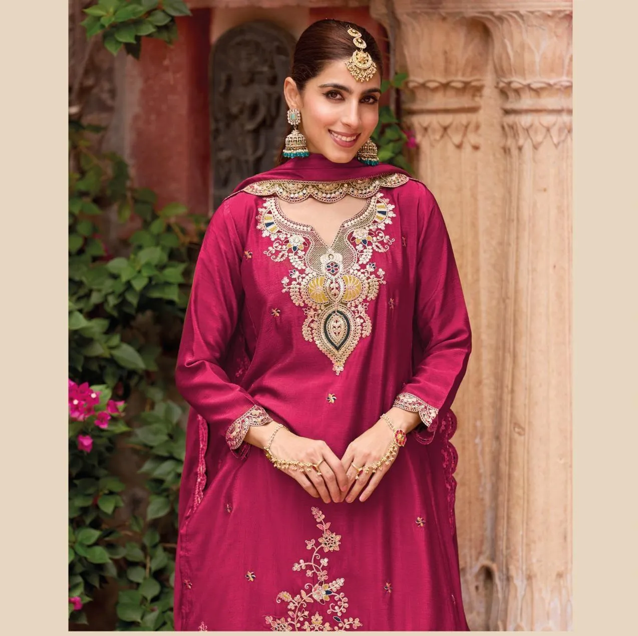 Details | Top Cinon Silk With Embroidery Foil Work Dupatta Cinon Silk With Embroidery |